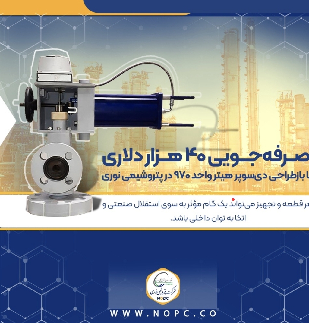 واحد ساخت داخل پتروشیمی نوری با همکاری مهندسان با تجربه شرکت سورین فیدارجنوب جم، موفق شدند دیسوپر هیتر واحد ۹۷۰ را بازطراحی و ارتقا دهند؛ اقدامی که میتواند علاوه بر جلوگیری از توقفهای ناگهانی و کاهش ریسکهای ایمنی، موجب صرفهجویی مستقیم سالانه ۴۰ هزار دلار و افزایش قابل توجه پایداری عملیاتی این واحد شود.